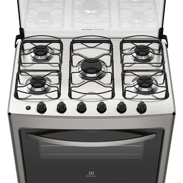 La Cocina Electrolux modelo 76SSC de 5 Hornallas es Elegante y resistente, cuenta con cubierta de Acero inox, Triple llama, Super horno autolimpiante y Vidrio interno del horno removible